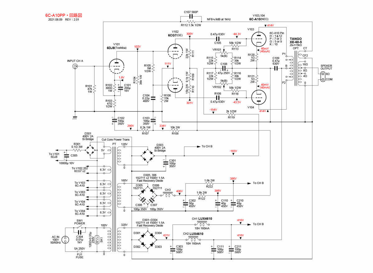 電圧増幅段の電源はクロストーク防止のため別系統になってます。