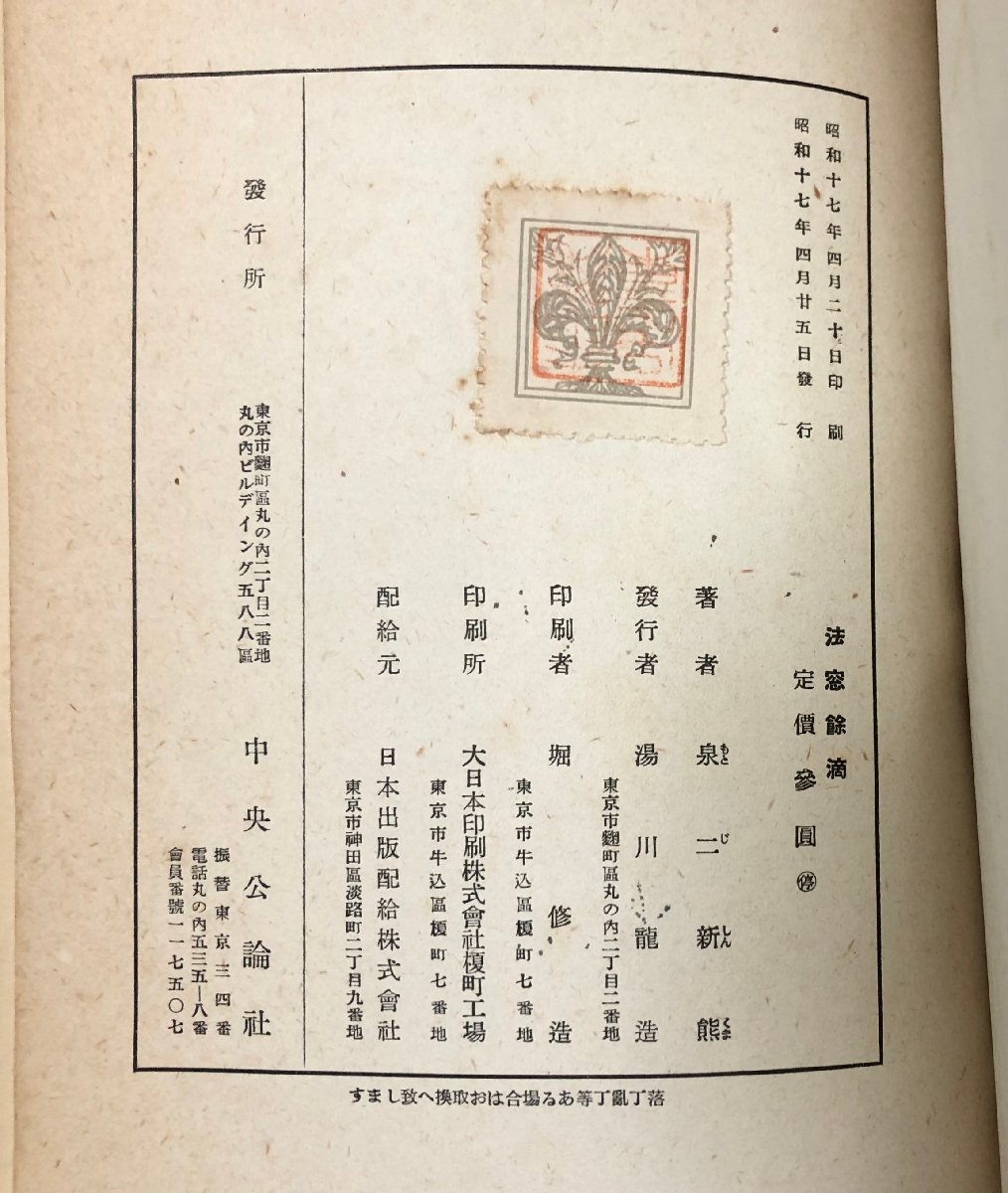 昭17 法窓余滴 泉二新熊 347P StoreIconBuynowIcon