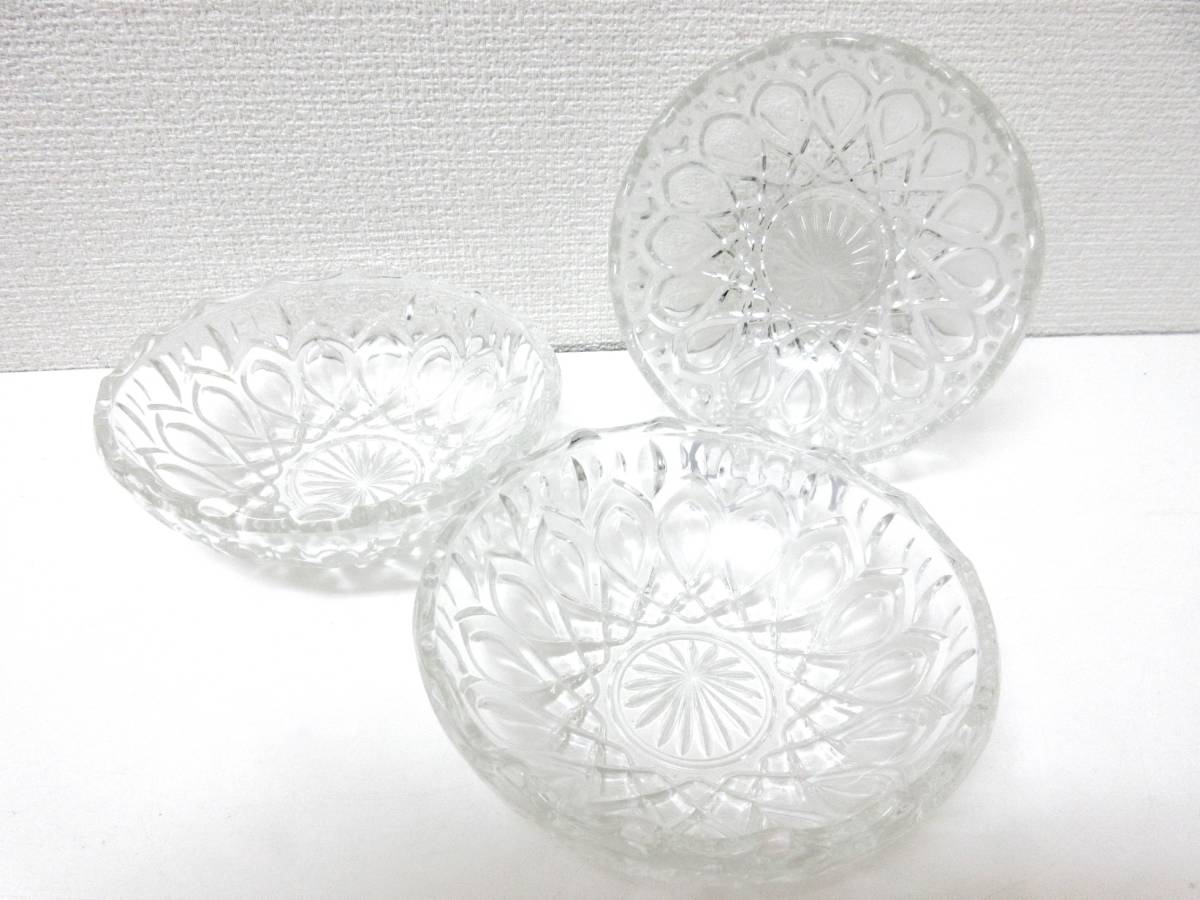 美品■ガラス鉢 クリスタル  中鉢 丸鉢 サラダボウル 3客セット 管理1805 L-1 EasyPaymentIcon