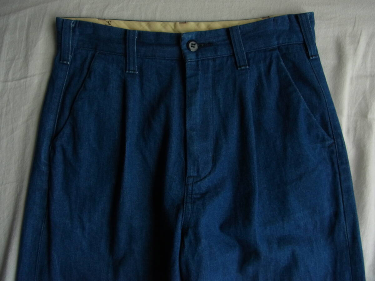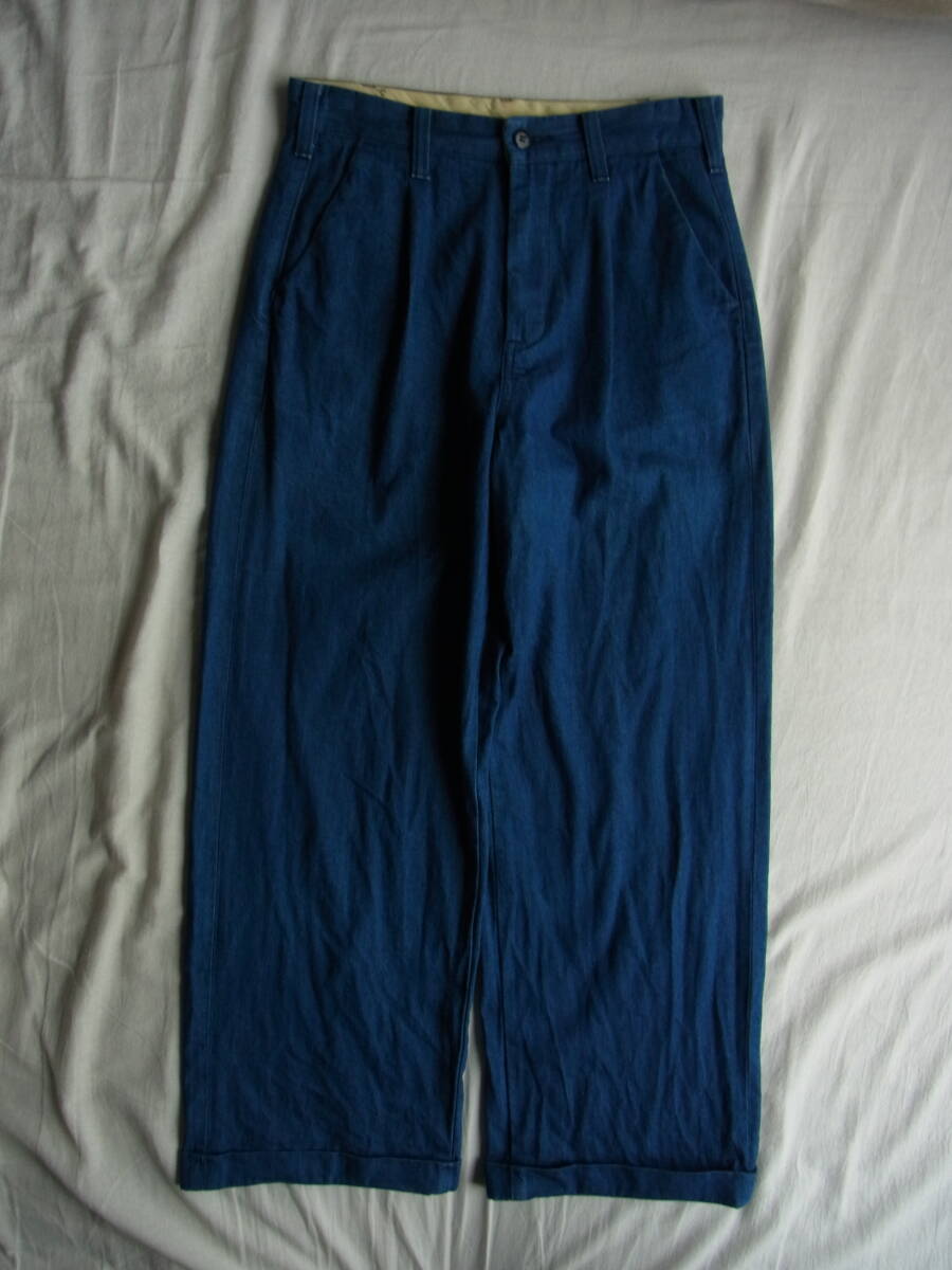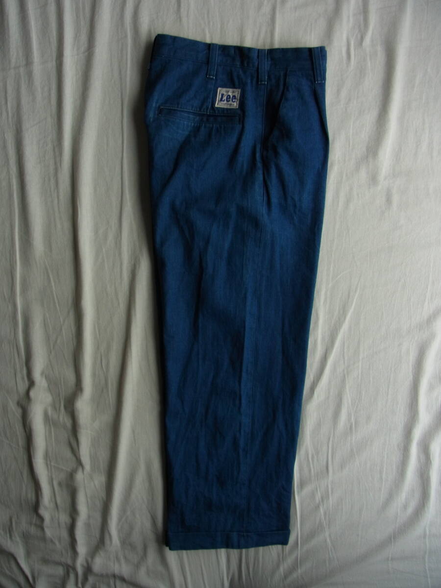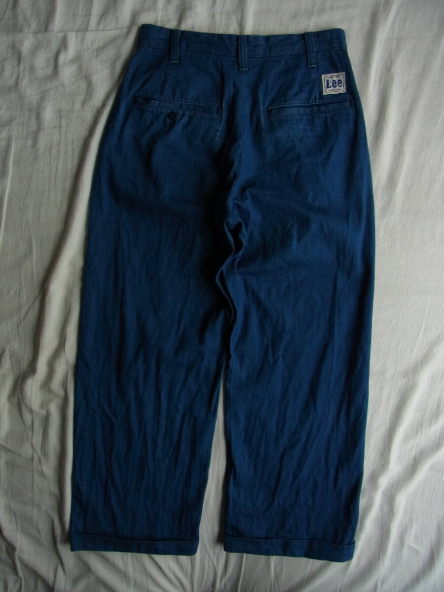 Lee リーのデニム素材で1プリーツ、ワイドシルエットのパンツになります。USEDで着用感と多少の色褪せは御座いますが、それ以外には特に目立ったダメージ等は御座いません。