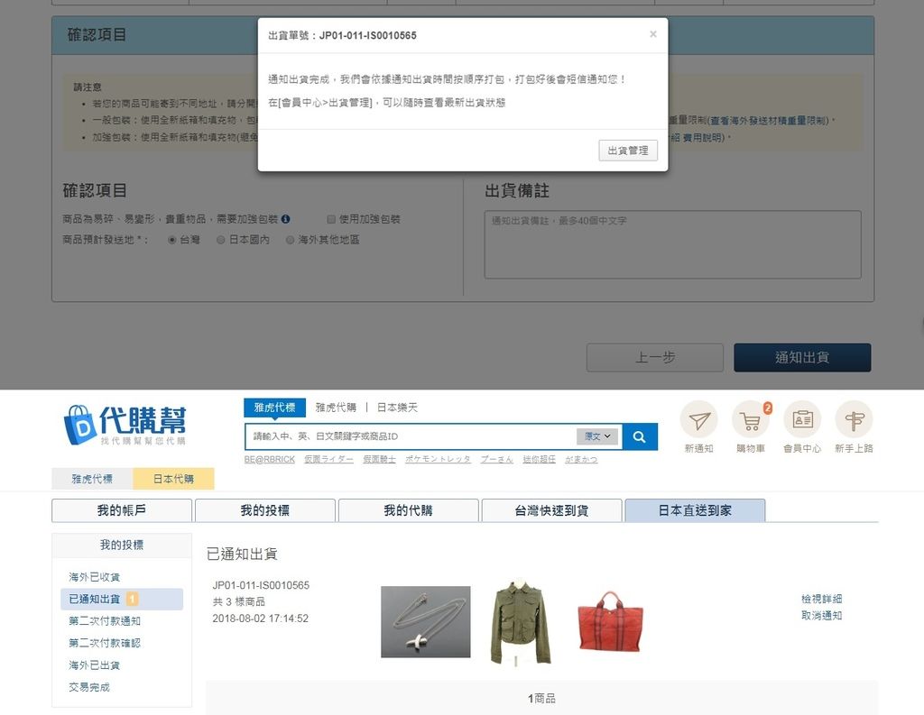 幾個包裹在日本前後差距了幾天,所以分2次寄送