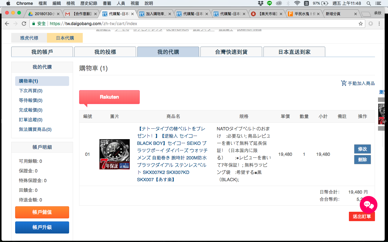 接著放入購物車送出訂單等待報價