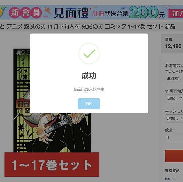 填寫商品資訊並加入購物車(網頁右下方紅色按鍵)