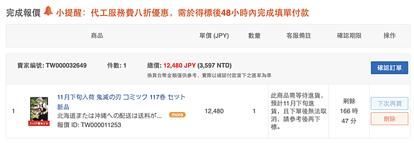 此時您可於會員中心 > 我的代購 > 完成報價 功能中確認您的訂單