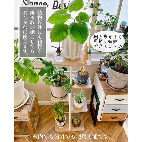 【金属と木の材質】弊社フラワースタンドは金属製のフレームと木で、割れたり変形したりしにくいです。非常に安定しており、耐荷重とバランスを確保するための長方形のベースで プランタースタンドとして、 花瓶や植木鉢又はプラントの美しさをアピールできます。【5段6鉢設計】棚自体が軽くて扱いやすいですが、高さの異なる5段が付属しています。 どこにでも簡単に移動でき、最大6つの鉢をうまく整理できます。異なるサイズの植物または異なる種類の花用の階層型ストレージです。素敵な植物や花に、快適な状態で日光を楽しんでもらい、成長を促進します。【滑り止めステッカー付き】滑り止めステッカーが地面を保護します。付属のスティックパッドは、床を引っかき傷や滑り止めから保護します。■注意事項