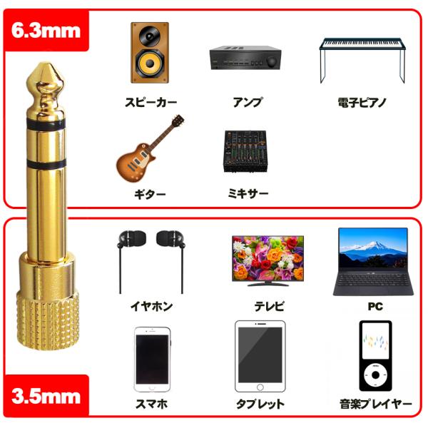 お手持ちのヘッドフォンの端子(プラグ)がMiniステレオで、電子楽器(電子ピアノ、電子ドラムやエレクトーンなど)やアンプ(アンプ、ベースアンプやギターアンプ)のジャックが標準(フォーン)ステレオジャックの場合に便利です。
