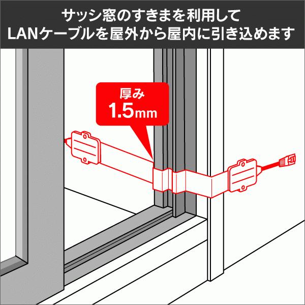 屋外IPカメラの設置やwi-fi ルーターを設置する際に最適です。サッシ窓のすきまを利用して、LANケーブルを屋外から屋内に引き込むことが出来るので、 壁に穴を開けずに配線することが可能です。ネジ、または両面テープで固定してください。