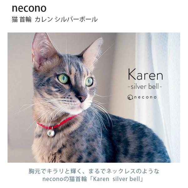 胸元でキラリと輝く、まるでネックレスのようなneconoの猫首輪■備考:胸元でキラリと輝く、まるでネックレスのようなneconoの猫首輪「Karen silver bell」