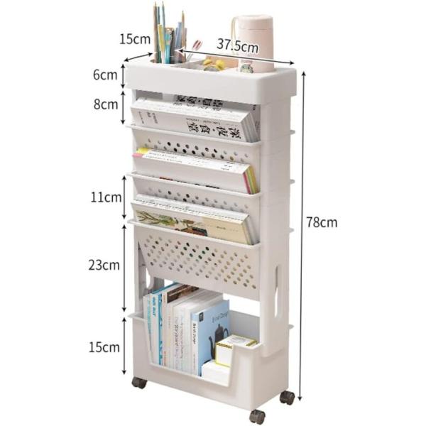 【スリムでマルチシーン対応】本棚の奥行きが約17cmとスリムなので、省スペースでマルチシーンに対応でき、狭い空間でも有効に活用できます。この収納ラックは、家庭だけでなく、コンビニエンスストアや喫茶店などにも置くことができ、雑誌や新聞を収納してお客様に読んでいただくことができます。 また、学校の教室や寮などにも置くことができます。