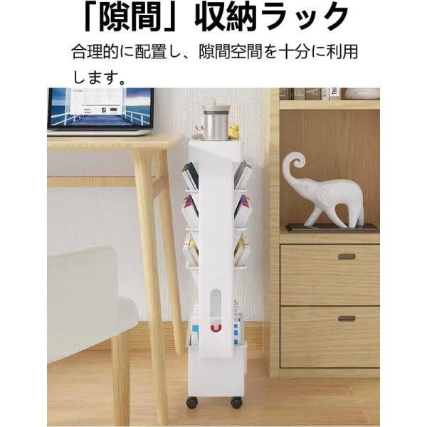 【大容量で便利に】この本棚は、5段式の設計されて約60冊の書籍や資料を収納できます。下の4段に書籍、雑誌、漫画本、ノート、料理本、辞書、フォルダなどの本を分類整理することで、まとめて収納できます。また、上のトレイには水筒やノート、ホッチキスなどの学用品や小物を効率的に整理整頓できます。求める情報に素早くアクセスでき、多機能で便利な本棚です。