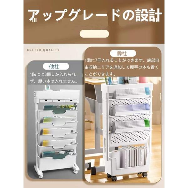 【移動便利なキャスター付き】本棚には360度回転可能なキャスターが付き、物でいっぱいの場合でも移動が簡単にできます。キャスターがあるため、掃除も簡単になり、非常に省力化されています。また、キャスターにははストッパーが付き、固定できます。