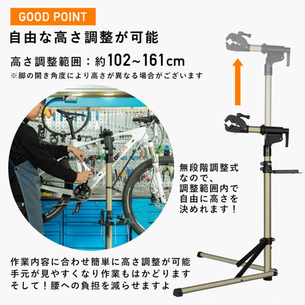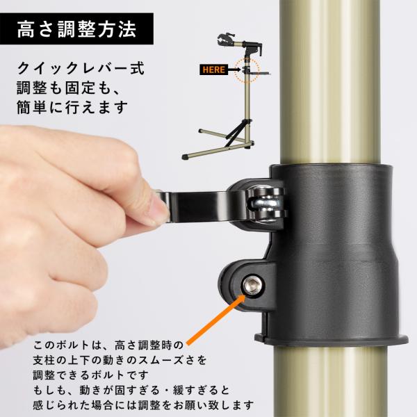 ・簡単に高さも角度も調整が可能なので、立ったままでも自転車の点検や調整をすることが可能に!
