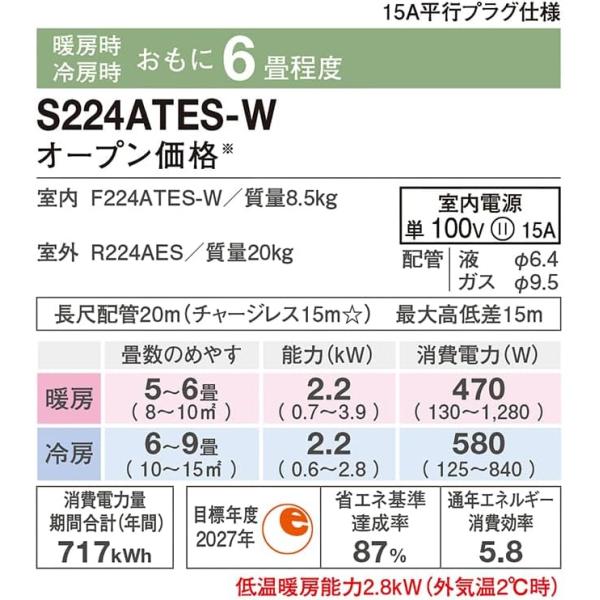 ■室内機品番:F224ATES-W 室外機品番:R224AES