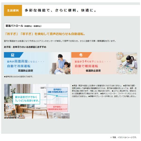 室内が高温または低温になりすぎるとエアコンのセンサーが検知して音声でお知らせ。さらに自動で冷房・暖房運転を行います。