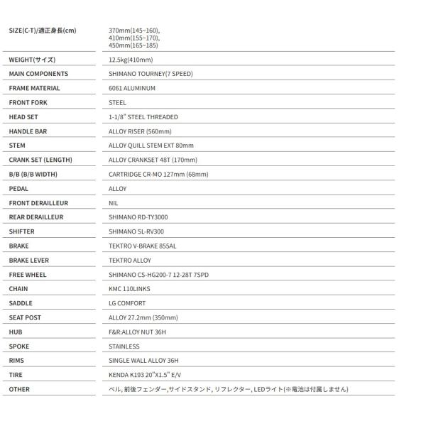 ベル, 前後フェンダー,サイドスタンド, リフレクター, LEDライト(※電池は付属しません) |