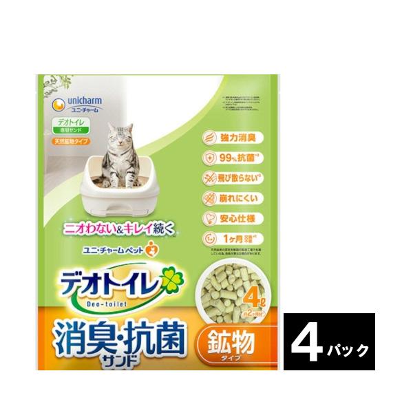 ●オシッコとウンチを強力消臭するデオトイレ専用取替サンド。内容量は4Lです。4パックセット。