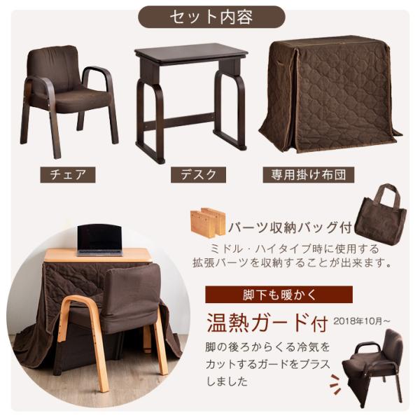 デスク天板までの高さ:55、60、70cm(3段階調節)