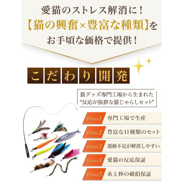 猫じゃらしセット として最低でも1個は ネコ の興味をひけるよう設計された製品です。
