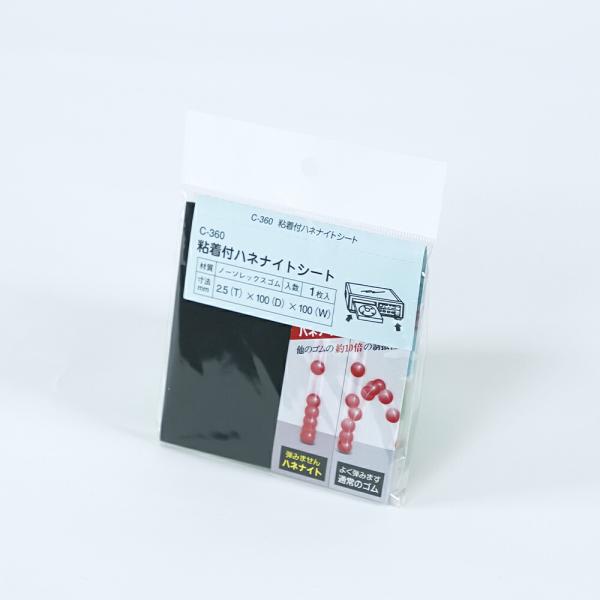 衝撃吸収、振動吸収で圧倒的性能を誇るハネナイトゴムからシートタイプの防振ゴムをご用意いたしました。気になる振動対策に、あらゆる場所でフィットします。大小のサイズをご用意しています。■粘着付ハネナイトシート品番:C-360色:黒サイズ:幅100×長さ100×厚み2.5mm重さ:40g/1個入数:1個材質:非反発ゴム(ハネナイト)※裏面に粘着付き【特長】・弾まない性質を持った非反発ゴム ハネナイト素材です。・一般のゴムと比べて約10倍もの制振性を有します。・シートタイプなので、対象に対して面で設置できます。・ハサミなどで自由にカットいただけます。【用途】・オーディオやPC、精密機器の防振制振対策。・Google NESTやEcho、BOSE、Home Podなどのスマートスピーカーの設置面に。テーブルとの振動を抑えます。・ハードディスクの下に設置して振動音対策など。・バイクや車の装備の振動音を抑える。