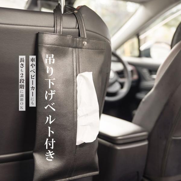 【掛け×置き2WAY/ベルト付きティッシュケース】バッグ型の吊るせるティッシュケース。置いて使える2WAYタイプ。手を伸ばせるところに見栄えよく吊るせて場所を取らない。