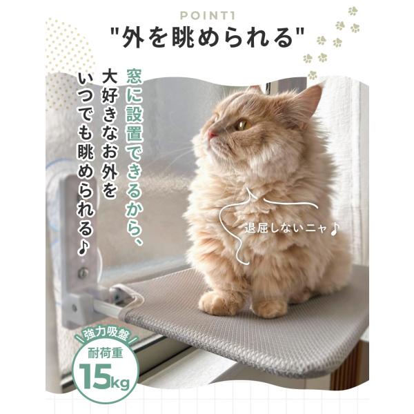 窓に設置できるから、大好きなお外をいつでも眺められる。