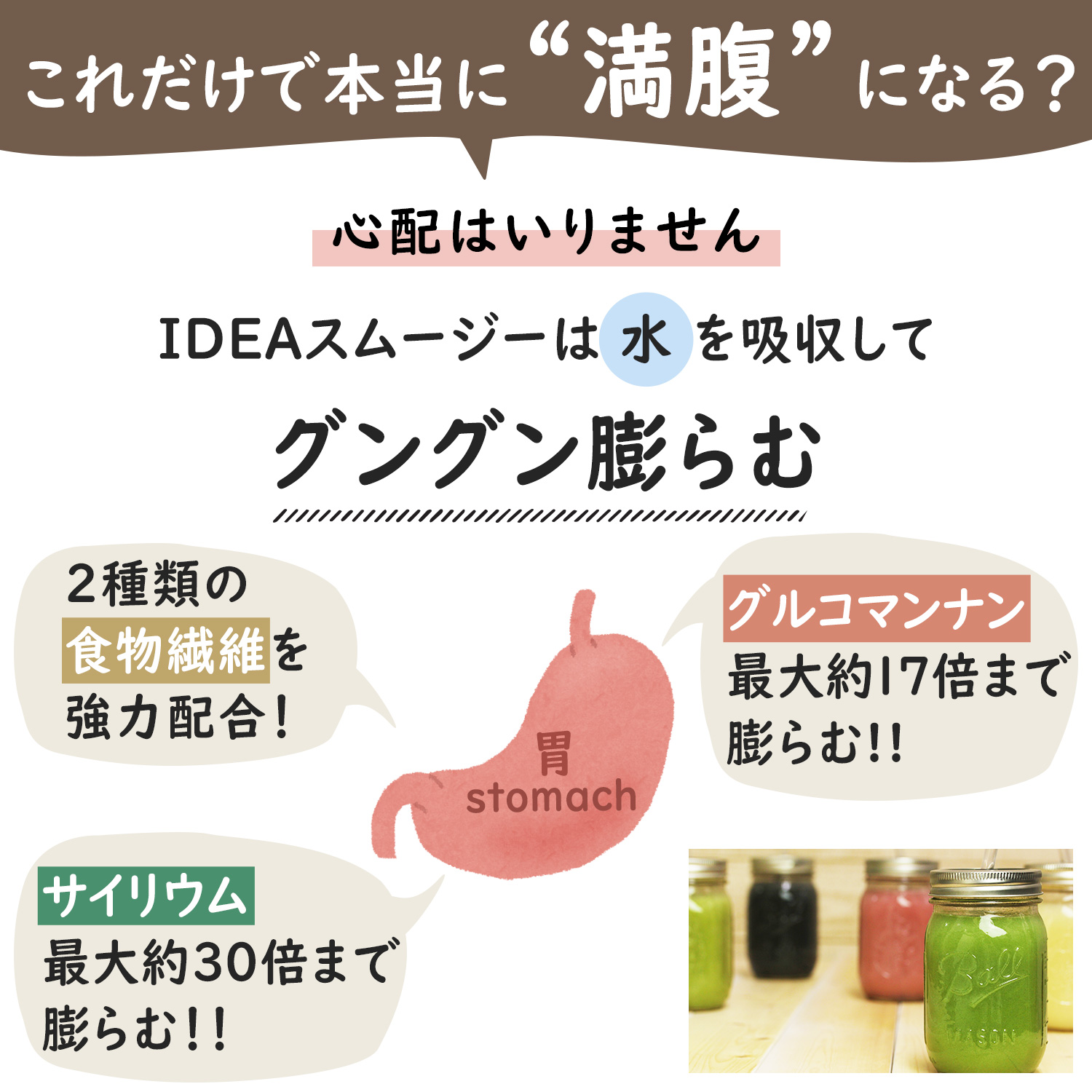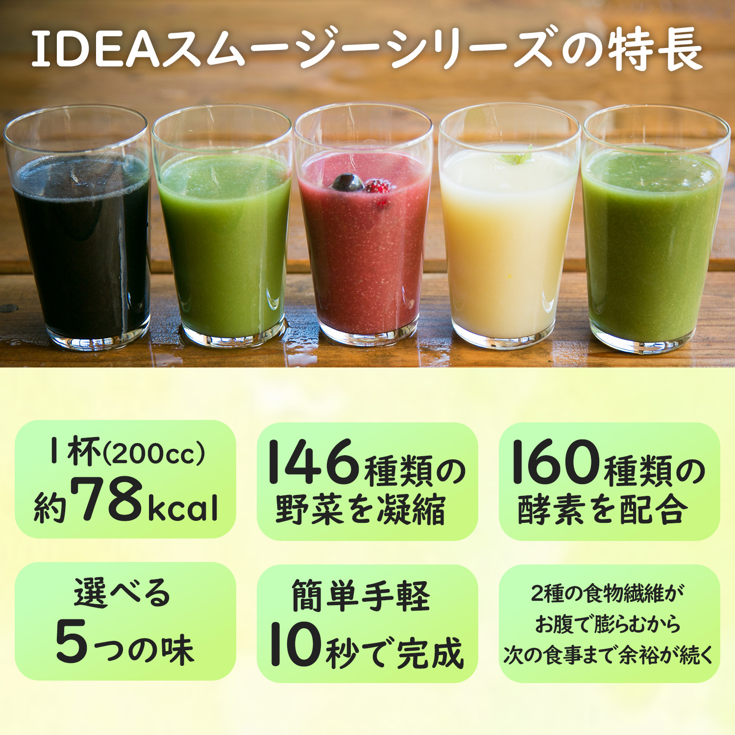 ※スムージーは1日3食のうち1食または2食を目安に食事の代わりにお召し上がりください。過度のダイエットを防ぐため、1日2食を限度としてください。